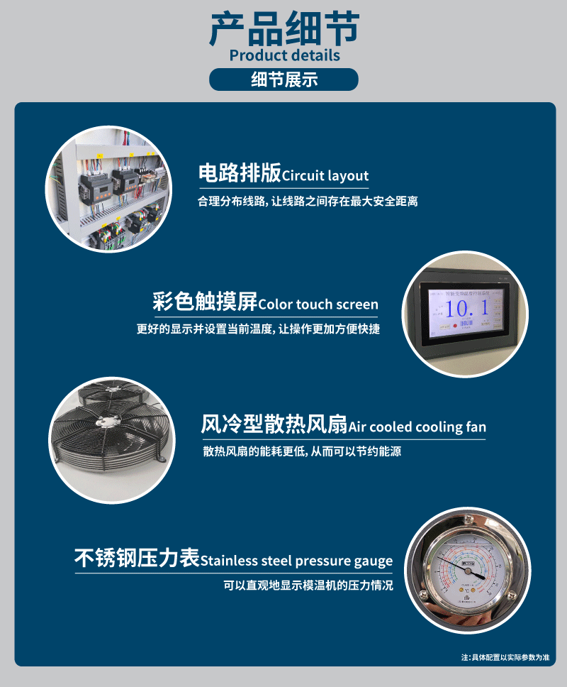 工業(yè)冷水機是一種廣泛應用于工業(yè)生產(chǎn)過程中的設備,用于提供穩(wěn)定的冷卻水供應。它具有高效、節(jié)能、穩(wěn)定性好等特點,可以應對各種工業(yè)領域?qū)鋮s水的需求。工業(yè)冷水機可用于冷卻設備、機械加工、注塑成型等多個應用場景。想了解更多關于工業(yè)冷水機的詳情,請訪問本頁面。